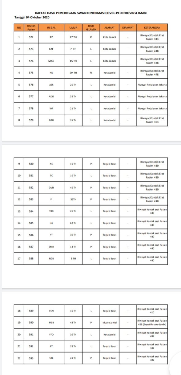 Jangan Abai, 2 Pimpinan Daerah Sudah Terkonfirmasi, dan Pasien Positif Corona Bertambah 22 Orang Hari Ini di Jambi